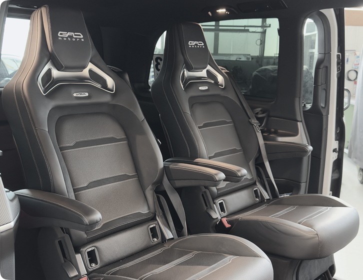 VRX seats by GAD-Motors combine comfort, support, and design excellence, perfectly matching the personality of your vehicle. Leather version: from per set.